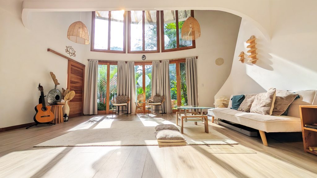 Nestled in the lush tropical landscape of Playa Chiquita, Puerto Viejo, Costa Rica, the Siren Sanctuary Retreat Center offers a serene escape where modern comfort blends seamlessly with the beauty of the Caribbean coast. At the heart of the sanctuary is the Mermaid yoga and dance center, an architecturally stunning space featuring a two-story vaulted ceiling and expansive floor-to-ceiling windows. This light-filled haven inspires peace, creativity, and connection to nature, serving as the perfect venue for yoga, dance, and group workshops.